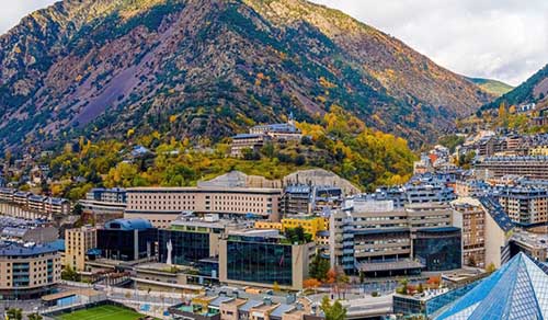 Andora :Fransa ve İspanya arasında Pirene Dağları’nın yükseklerinde bulunan denize kıyısı olmayan bir ülke. Dünyanın en küçük ülkelerinden. Ülkenin yüzölçümü 180 mil. Resmi dili Katalanca. 85 bin nüfusu var. Dağlık bir ülke. Başkenti Andorra la Vella. Deniz seviyesinden 3.356 metre yükseklikte Avrupa’nın en yüksek başkenti unvanı var. Komşusu olan ülkelerin en yakın havaalanlarına yaklaşık üç saat uzaklıkta. Bu havalimanları İspanya’nın Barselona ve Fransa’nın Toulouse kentleri. Andorra’nın havaalanı yok ama La Massana, Arinsal ve Escaldes-Engordany’de üç helikopter iniş pisti var.