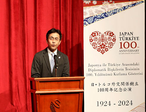 Gösteri öncesinde sahneye çıkan Japonya İstanbul Başkonsolosu Kenichi Kasahara burada yaptığı konuşmada: “İstanbul Belediyesi başta olmak üzere gösteriyle ilgilenen Muhsin Ertuğrul Sahnesi’nde görevli tüm arkadaşlara teşekkür ediyorum. Ayrıca değerli katılımcılara hoş geldiniz diyorum. Bu yıl Japonya ile Türkiye arasındaki diplomatik ilişkilerin tesisinin 100. yıl dönümünü karşılıyoruz. Japonya Başkonsolosluğu olarak Ocak ayından bu yana 200 kadar kültürel etkinlik gerçekleştirdik. Ayrıca geçen hafta Japonya’nın veliaht prens ve prensesi İstanbul, Ankara’yı ziyaret etti. Bugünkü Japon davulu konserini ilişkilerin 100. yıl dönümünün son etkinliği olarak adlandırabiliriz. İki ülke arasındaki dostluk ilişkisi 1890 yılındaki Ertuğrul Fırkateyni kazası ile başlıyor. Meydana gelen büyük depremlerde, zor dönemlerde hep birbirimizin yanındaydık. Bundan sonra Japonya ve Türkiye arasındaki dostluk ilişkisinin daha da derinleşeceğini içtenlikle diliyoruz” dedi.