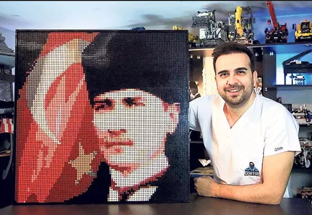 “Beyinci doktor”, geçtiğimiz 23 Nisan Ulusal Egemenlik ve Çocuk Bayramı’na özel 9 bin 600 parçadan oluşan dev bir Atatürk portresi yaptı. LEGO’dan Atatürk portresi çalışmasının kendi tasarımı olduğunu belirten “Beyinci doktor”, “Bilgisayarda LEGO’lardan oluşan “Ata’ya Minnet” adını verdiğim bir Atatürk portresi tasarladım. Malzemeleri yurt dışından sipariş ettim. 23 renkten oluşan 9 bin 600 parçayı iki günde büyük bir sabırla birleştirdim. Atatürk, 23 Nisan’ı çocuklara armağan ederek, önce çocukların önemine aynı zamanda da yaratıcı ve çalışkan bir neslin önemine vurgu yaptı. Ben de bu çalışmayla yaratıcı bir nesle katkı sunmayı amaçladım” dedi.